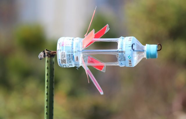 ペットボトル風車 簡単なのによく回る作り方!溝に沿って切るだけ モグラ対策。