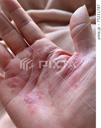 肌荒れの症例 消毒のし過ぎ等で荒れた手のひらの写真素材75231787- PIXTA。