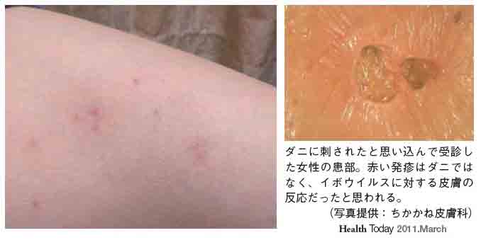 日本紅斑熱患者 マダニの刺し口と紅斑 発疹図5広島県。