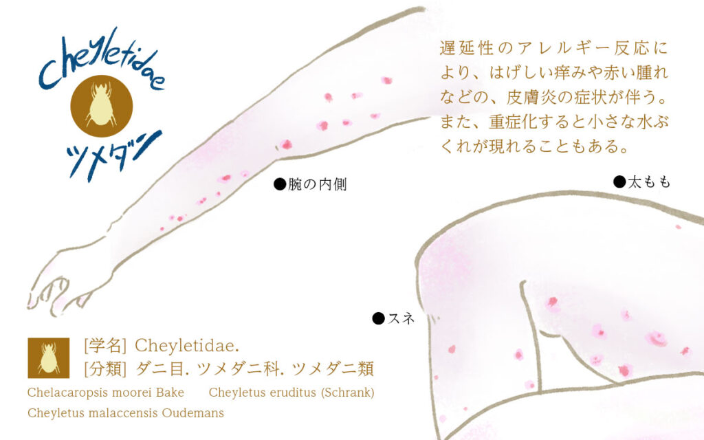 布団で痒い!ツメダニに刺された跡と特徴とは? イラスト画像で解説神奈川県の駆除専門業者クリーン計画プロープル。