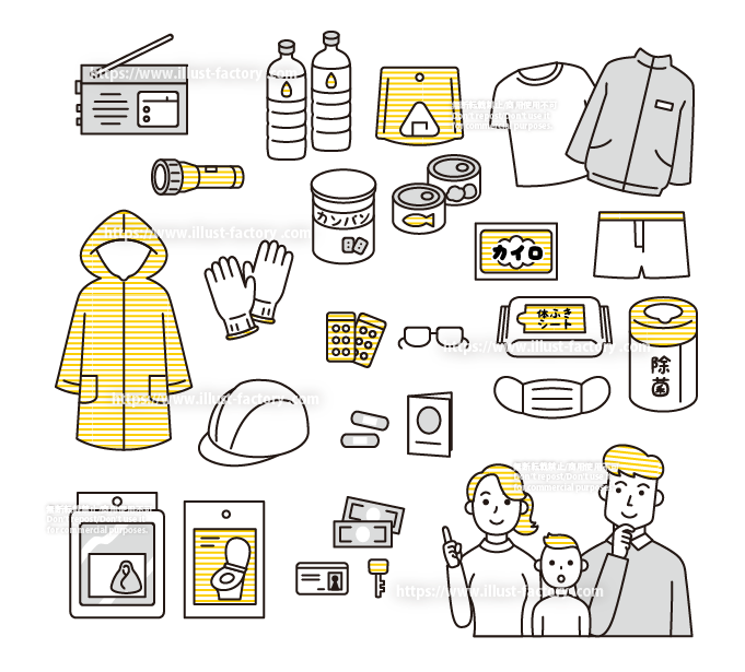 防災グッズのセットイラストイラスト - No: 22653785無料イラスト・フリー素材なら「イラストAC」。