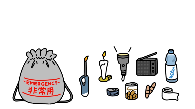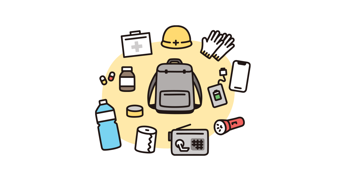 地震のイラスト「防災グッズ」かわいいフリー素材集 いらすとや。