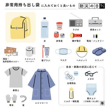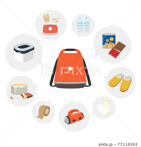 非常用持ち出し袋と中身 防災バッグ のイラスト素材86040610- PIXTA。
