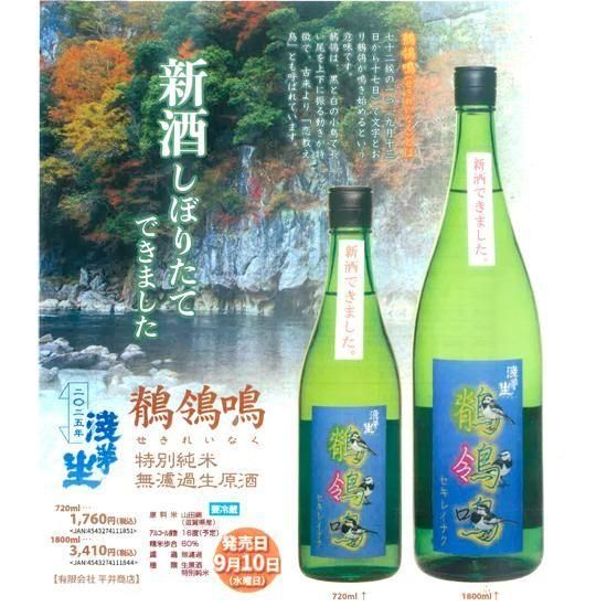 浅茅生 鶺鴒鳴 せきれい鳴く特別純米 無濾過生原酒 – 北海道根本商店。