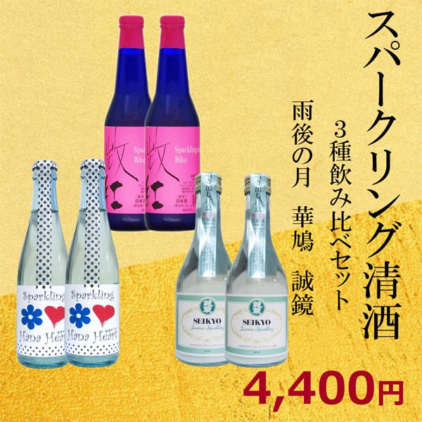冷蔵便発送 スパークリング清酒3種セット 雨後の月・誠鏡・華鳩。