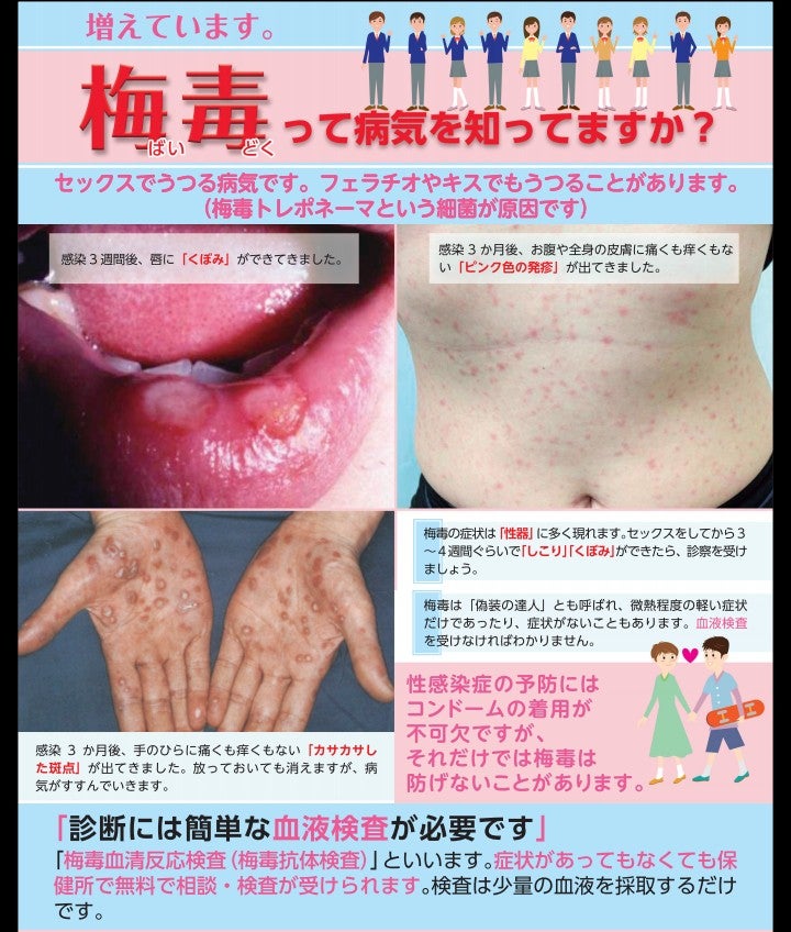 梅毒 症状・潜伏期間・検査方法・治療渋谷・五反田・中野性病検査の感染症内科カラダ内科クリニック。