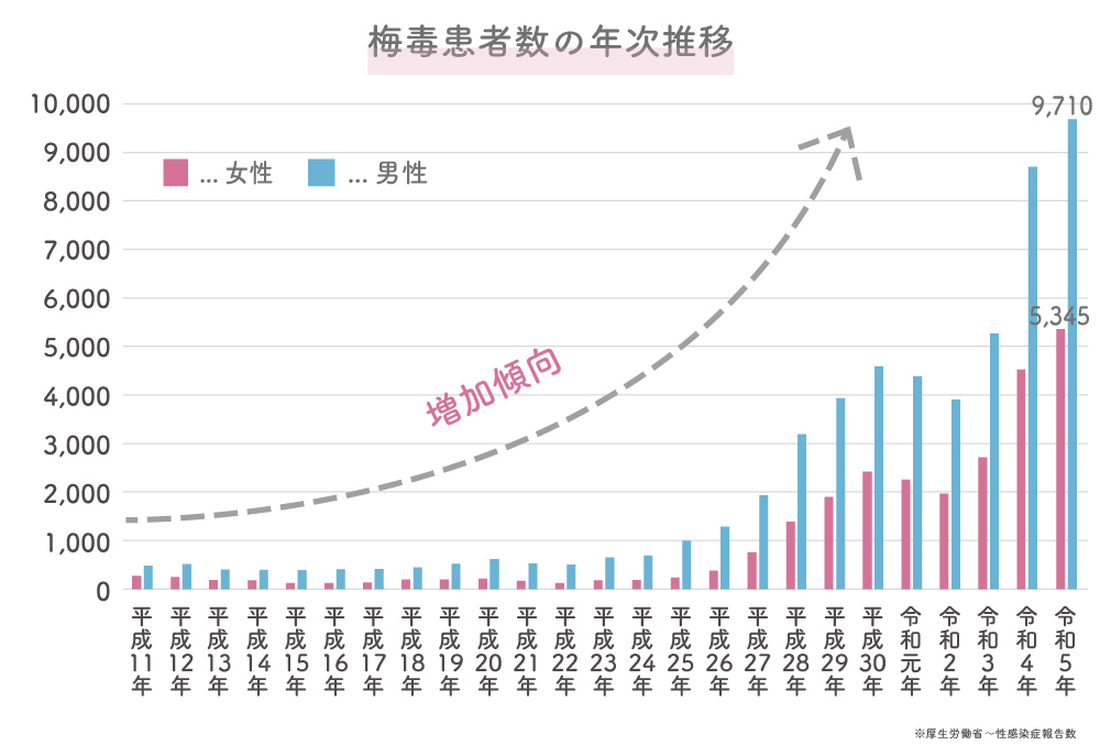 急増する梅毒~梅毒とは?みうら泌尿器科クリニック。