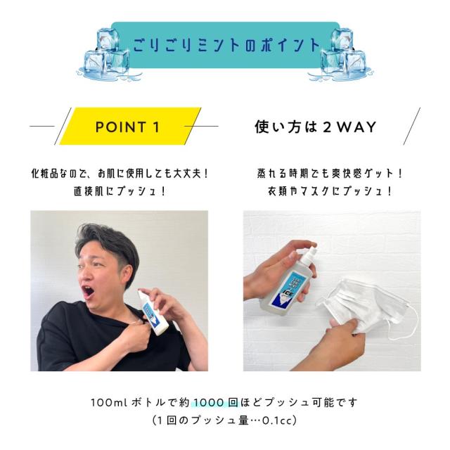 GORIGORI ミント クール アイススプレー 100mlゴリゴリミント ごりごりミント 薄荷 アロマ ミントスプレー クールミスト冷感スプレー 冷却スプレー ハッカスプレー ボディミスト 冷感 ハッカ ひんやり 首 ハッカ水 ボディスプレー アウトドア 暑さ対策 スポーツ+。