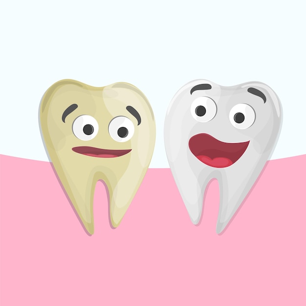 プロの歯のホワイトニング、漫画の健康と黄色の歯、ベクトルイラスト。医療イラスト-歯科医療Premiumベクトル素材。