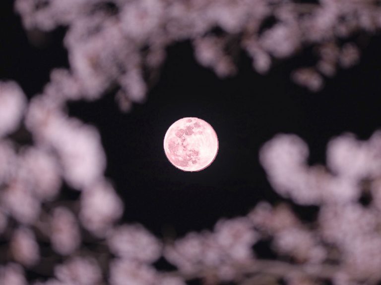 ご利益があるかも ピンクムーンと桜を撮影した写真が神秘的 – grapeグレイプ。