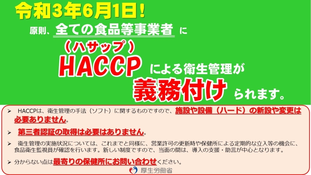 HACCP ハサップ の実施は義務です。あなたのお店のHACCP、大丈夫?茅ヶ崎市。