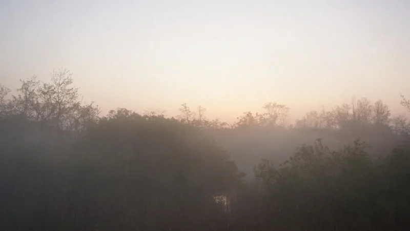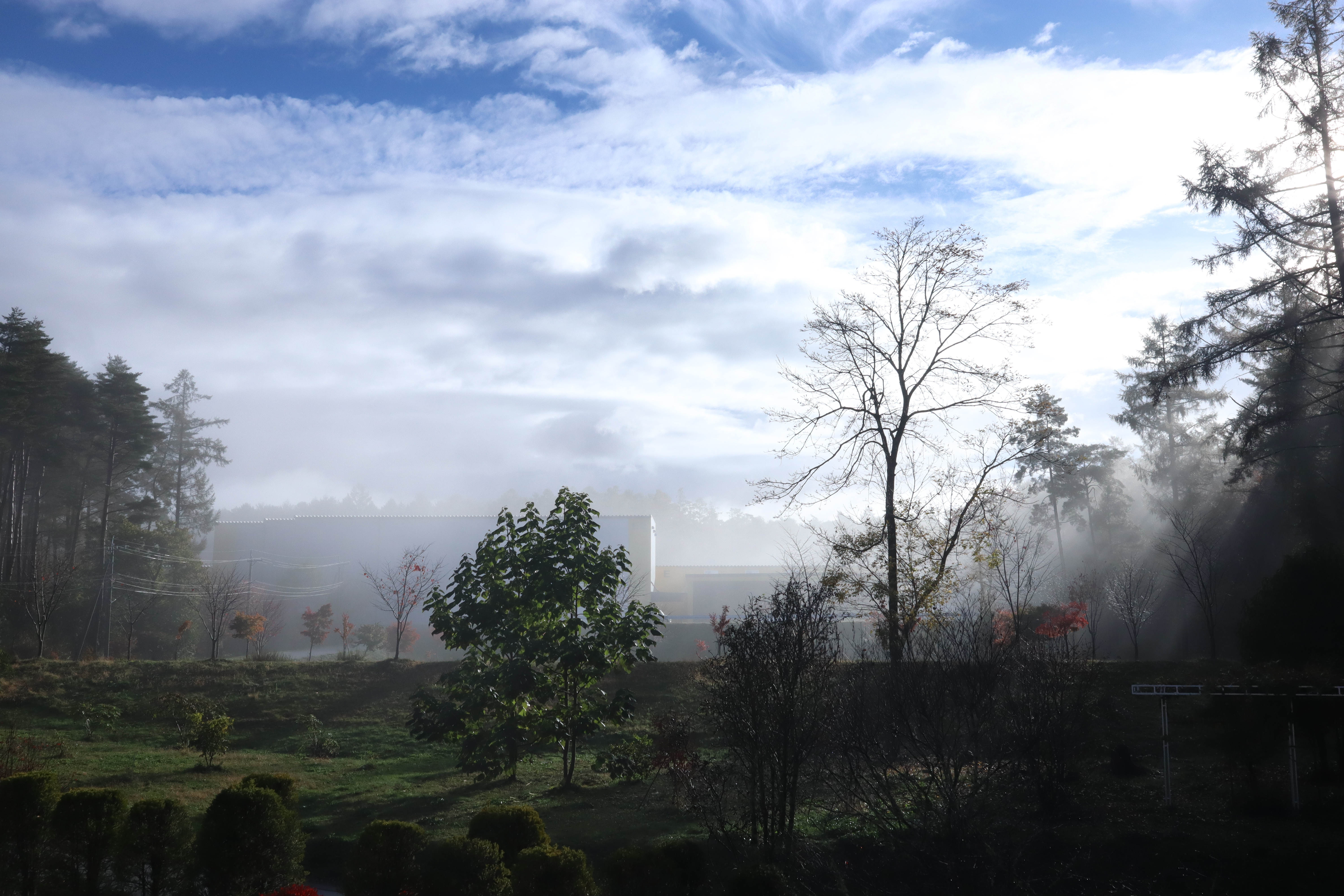放射冷却現象 たなびきの情緒 山際の層雲、地表の地霧樹下のひととき。