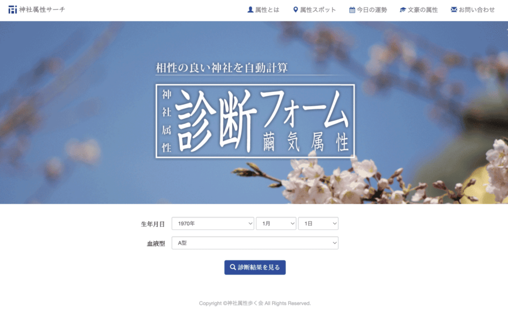 神社の属性とは!? あなたと相性の合うパワースポットを自動診断 - 神社属性サーチ。