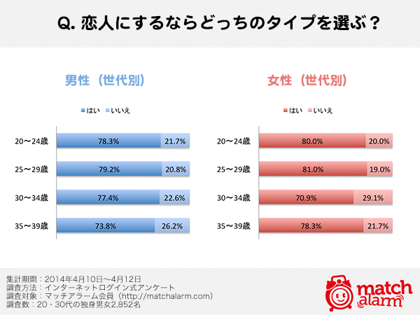 恋人にするならスリム体型、ぽっちゃり体型どちらがタイプ?男女ともに75%以上が「スリム体型」と回答マッチアラーム株式会社のプレスリリース。