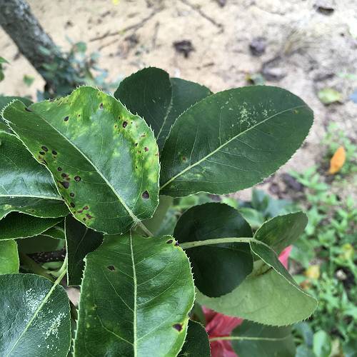 梨とリンゴの葉っぱの写真です。枝についた状態で葉っぱに黄色 園芸相談Q&Aみんなの趣味の園芸。