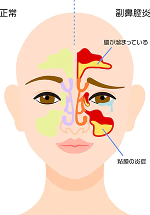 鼻づまりや鼻が痛い・鼻の奥が痛い副鼻腔炎 蓄膿症 ・アレルギー性鼻炎。