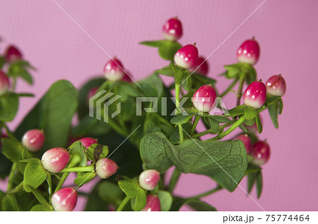 ヒペリカムがピンク色の実を付けています。学名はHypericumです。の写真素材75774464- PIXTA。