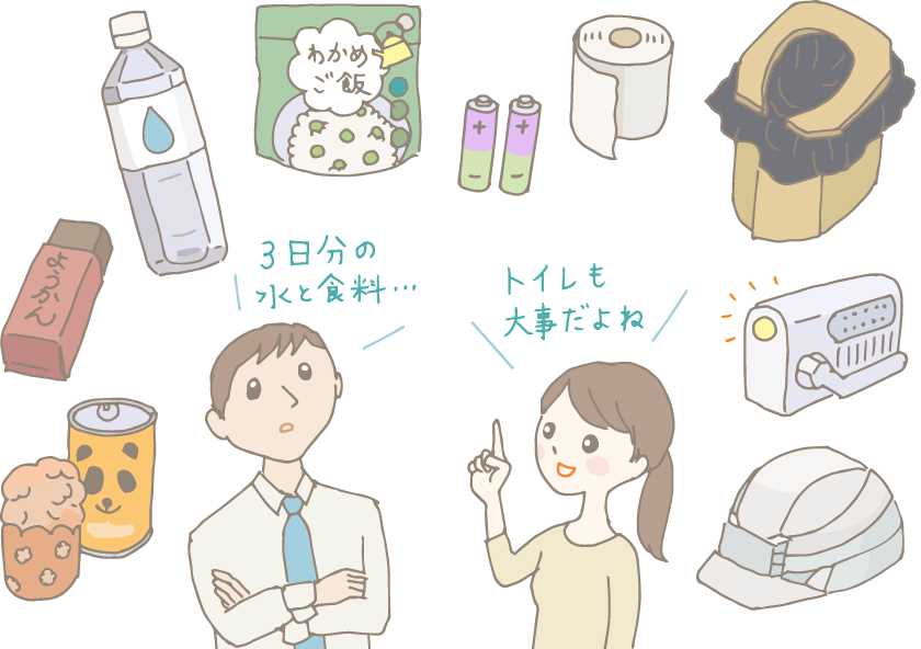 防災備蓄のイラストかわいいフリー素材集 いらすとや。