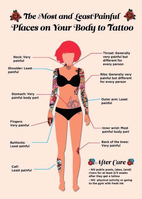 🕸️現代魔女 on X: "タトゥーどこが痛いみたいなやつ、色々ついてもらったけど、 鎖骨、膝 裏、中心線沿いの胸の下らへんなんかはガハッてなる。よく言われる脇の下、腕の柔らかい場所、脇腹は↑ほどでは無い。ただ、刺した時の痛みとアフターの痛み は別で、ふくらはぎは。