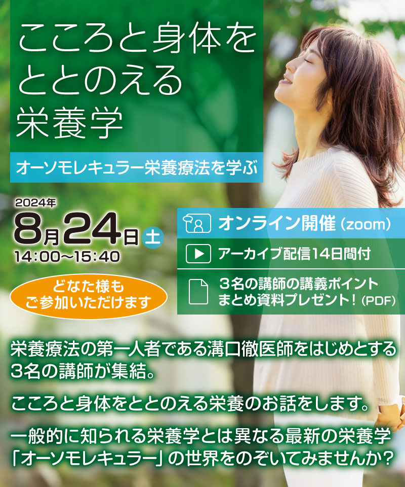 イベント・セミナー案内 - オーソモレキュラー栄養医学研究所。