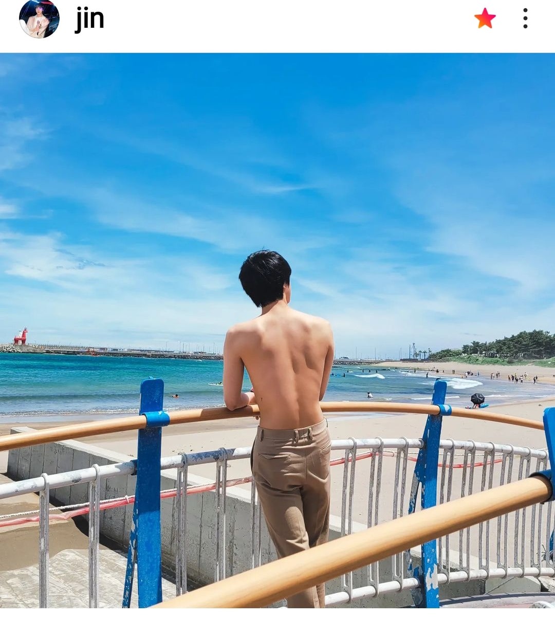 BTS♡JINインスタ投稿:海 22.6.26 1 3: GO BTS for BTS。