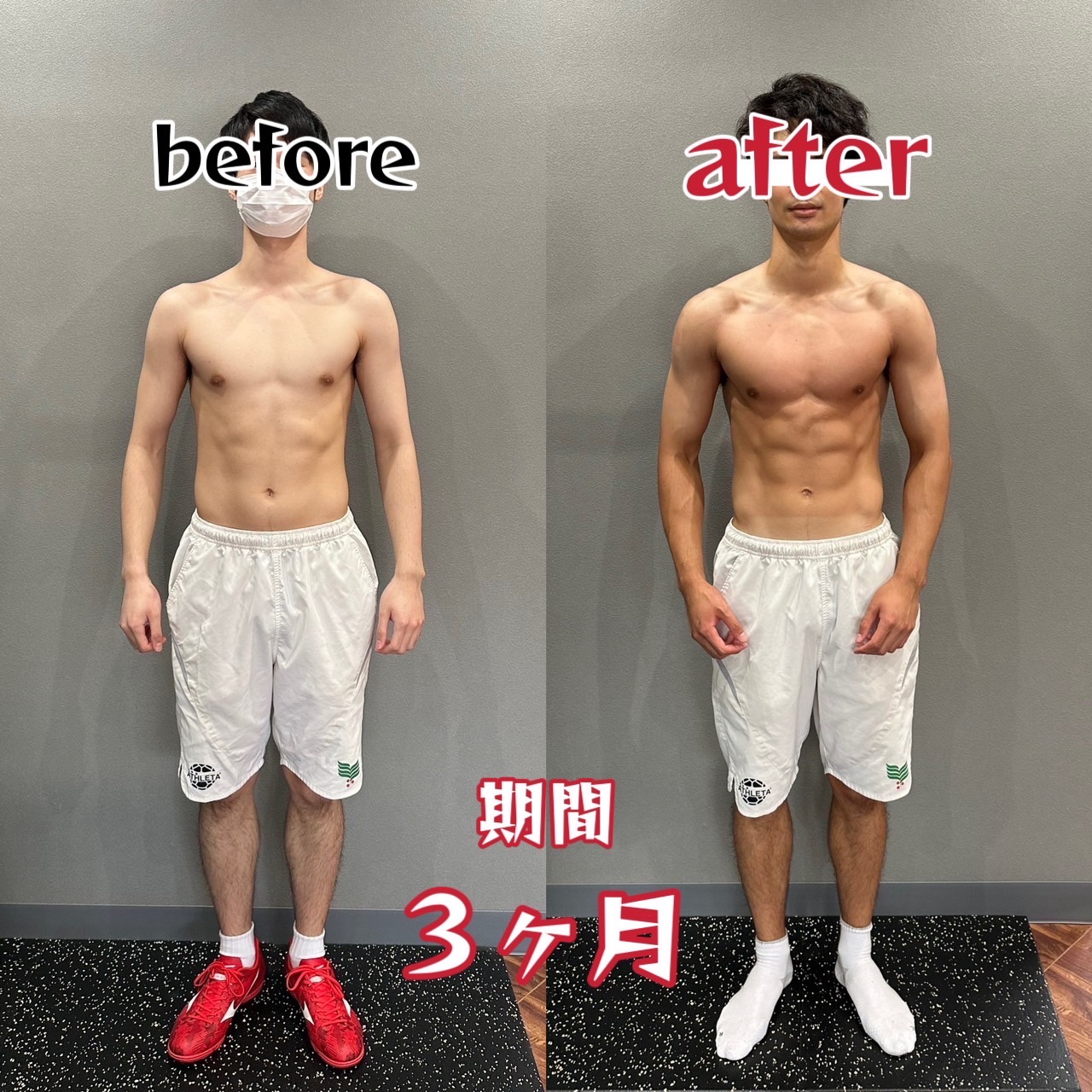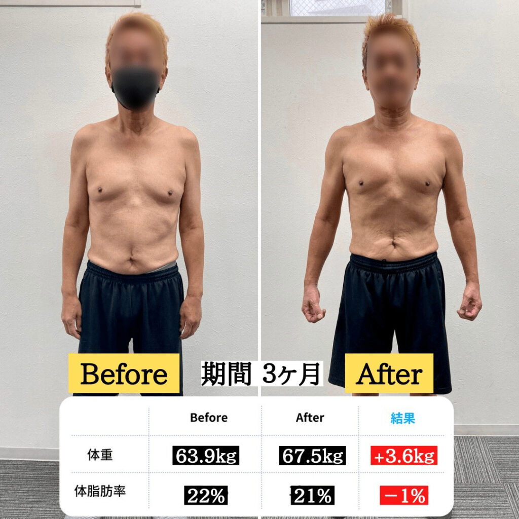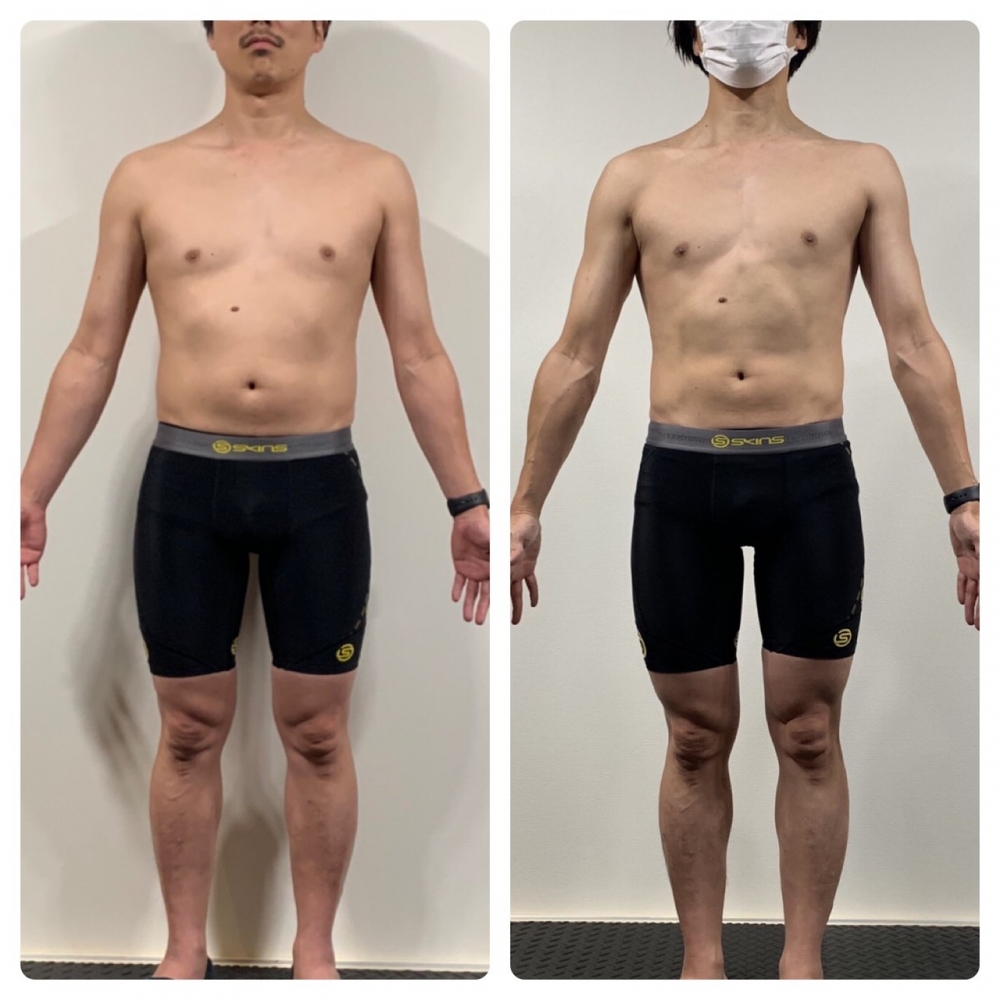お客様ビフォーアフター 3ヶ月 1日4~5食 食事制限・有酸素運動なし-公式 パーソナルジムRENAGE - 大分。