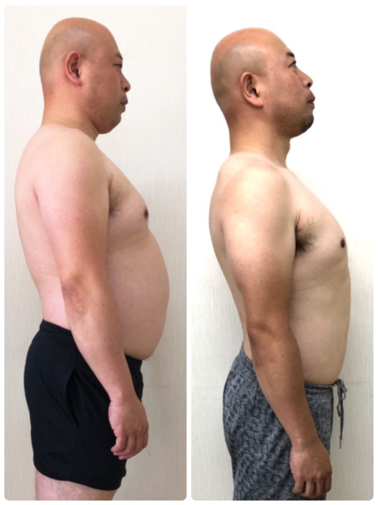 ウエスト約−11cm!40代男性の方のダイエットビフォーアフター大阪府八尾市のパーソナルジムでトレーニングならROSSO。