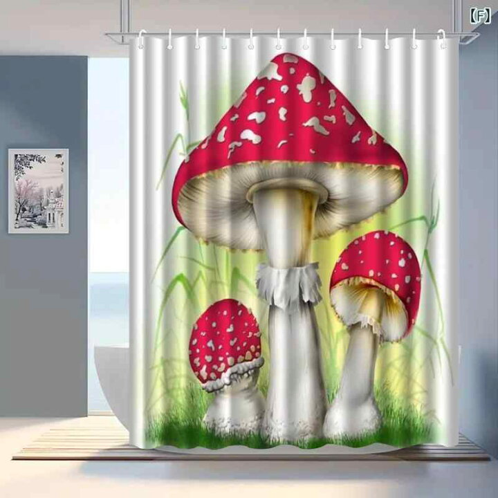 楽天市場 シャワーカーテン 防水 防カビ 3D デジタルプリント 穴あけ不要 ポリエステル製 幻想的なマッシュルーム柄 田園風 バスルーム 目隠し間仕切り 多サイズ対応 速乾 : モズラボ。