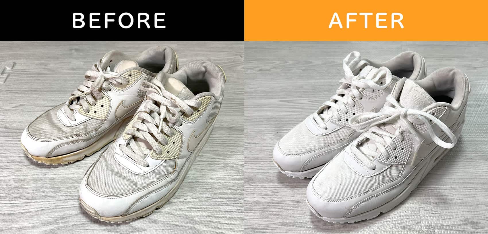 漂白 黄ばんだスニーカーを真っ白に!パワープレイで劇的変化。