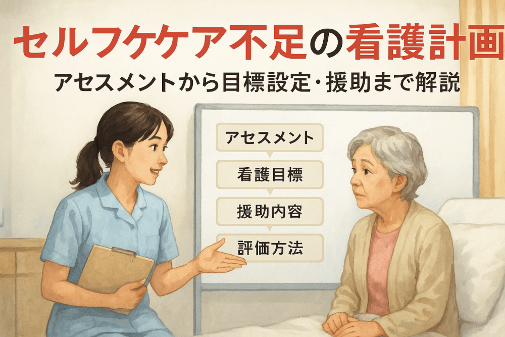 セルフケア不足の看護計画 – 実践的な目標設定から介入方法までカンサポ看護過程や実習記録を高品質に作成。