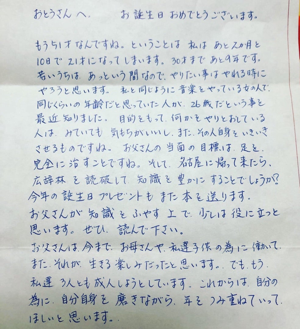 入院されてる生徒さんからお手紙を頂きました。 - 箕面市・豊中市の西尾ギター教室。