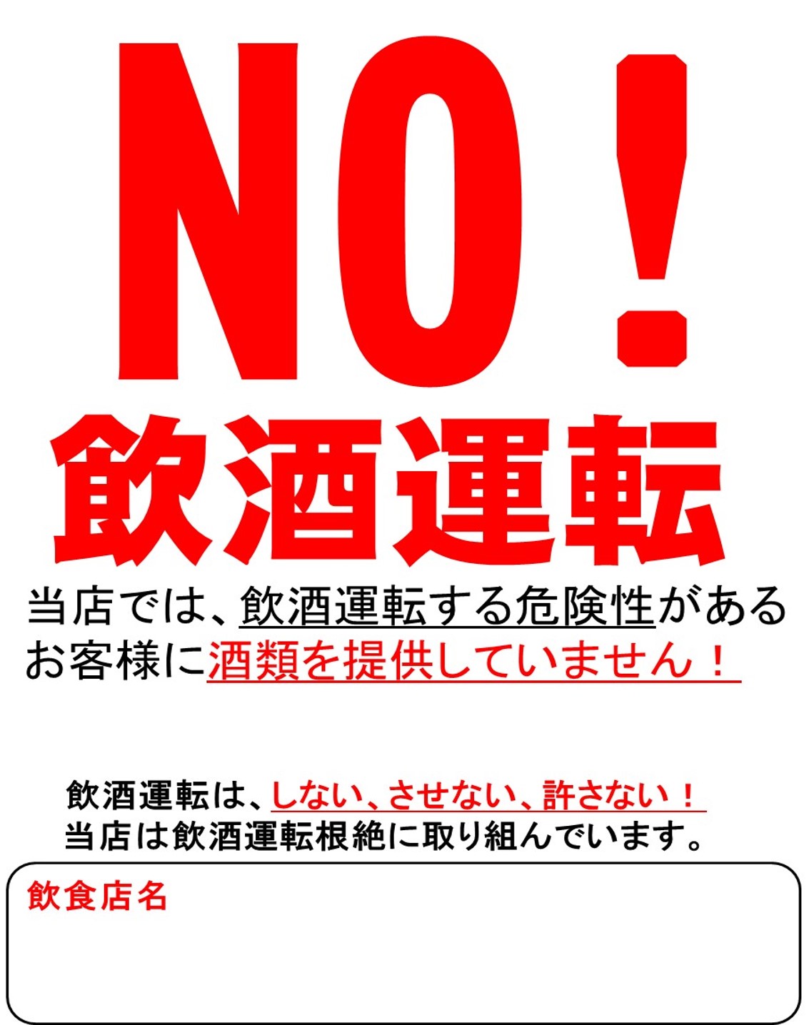 飲酒運転禁止POP 車&自転車ver 無料配布のお知らせ - 株式会社 名畑。