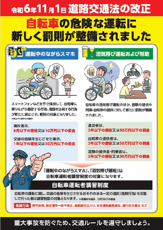 警察庁からのお知らせ自転車のスマホ・酒気帯び罰則強化お知らせおおさか飲食組合 大阪府の飲食事業者・経営者の支援活動、研修、保険加入なら。