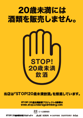 STOP!20歳未満飲酒 ポスターダウンロードSTOP!20歳未満飲酒。