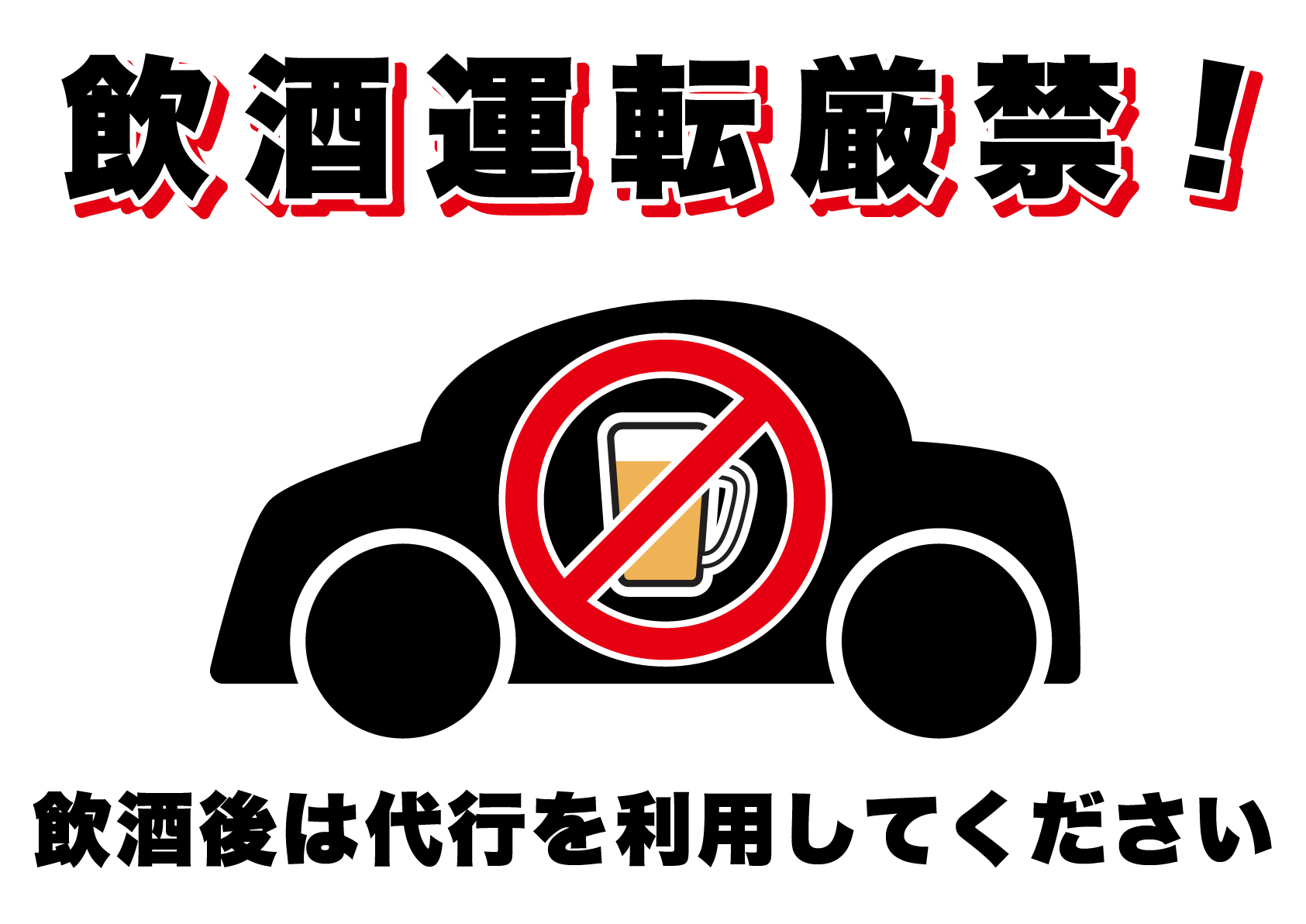 飲酒運転厳禁、代行を使っての張り紙フリー張り紙素材 はりがみや。