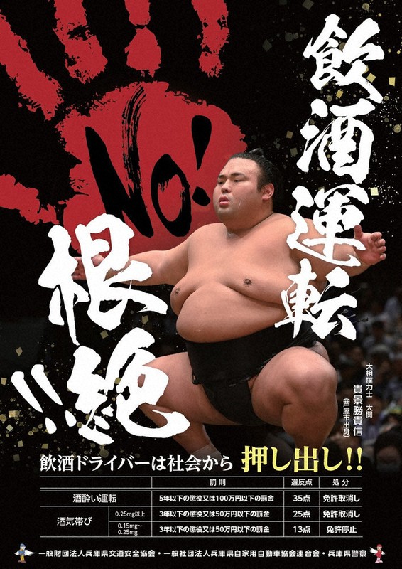 飲酒運転、社会から押し出し!! 貴景勝ポスター作製 兵庫県警毎日新聞。