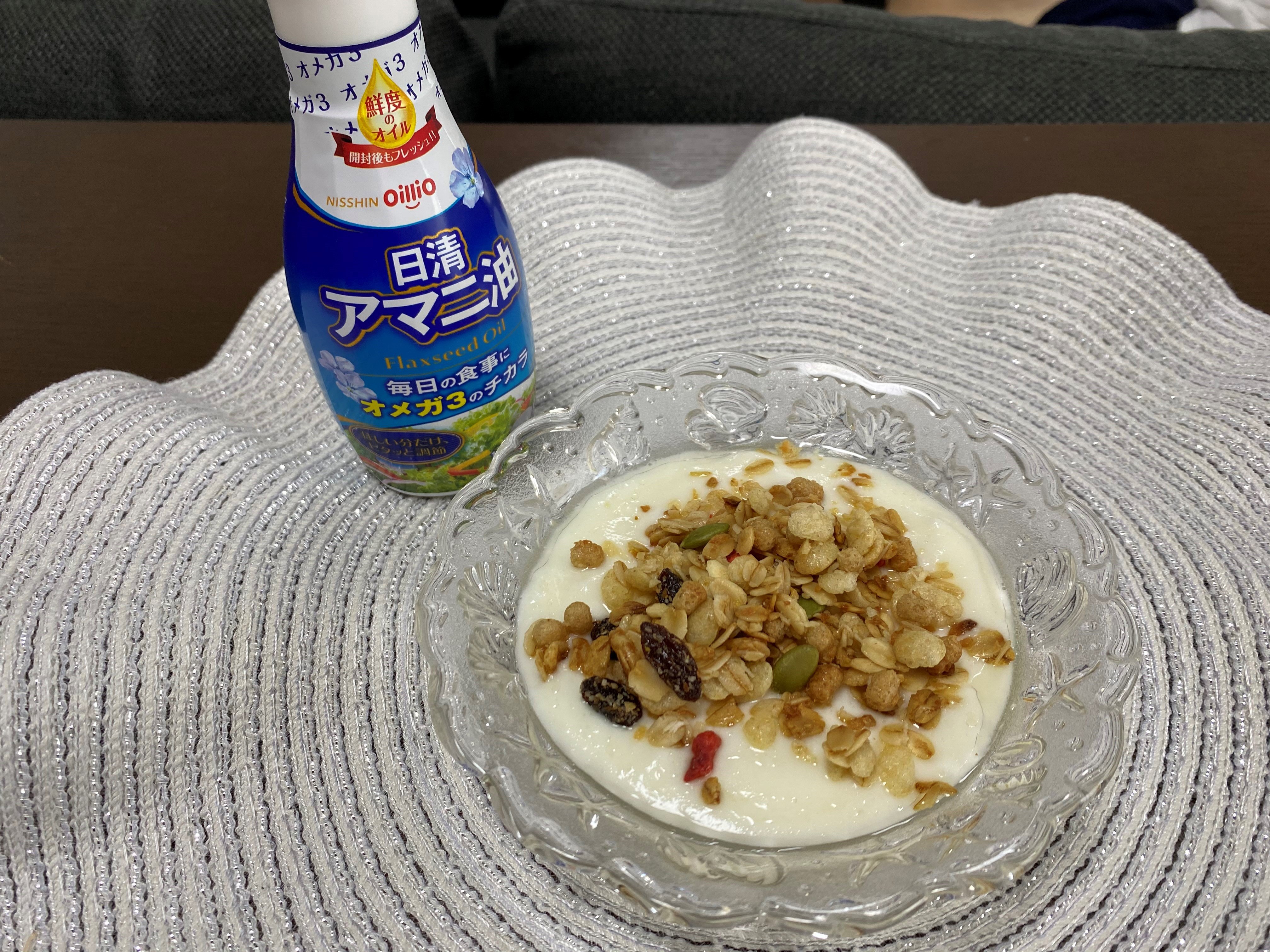 亜麻仁油 アマニ油 とヨーグルトの組み合わせ。おいしく食べて健康的な食生活へ。