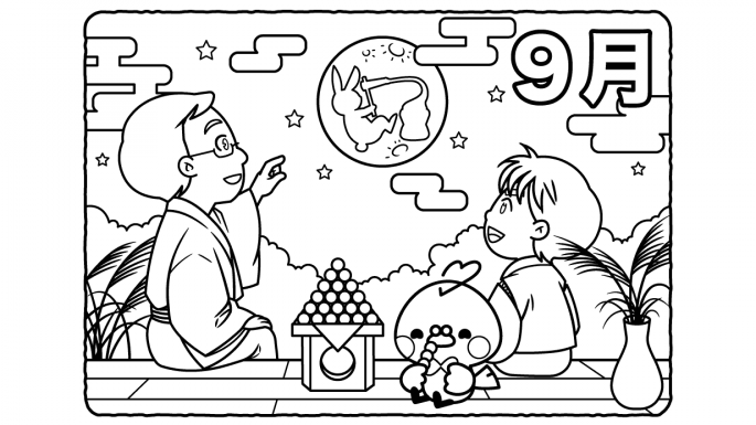 高齢者レク素材 月見回想塗り絵介護レク広場~レク素材やレクネタ 企画書 の無料ダウンロード。