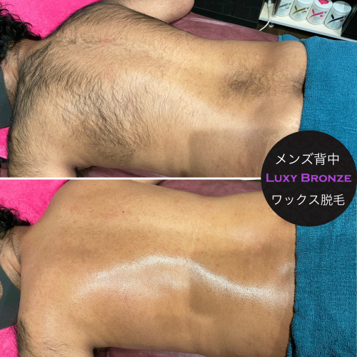 メンズ 男性 背中もワックス脱毛でキレイに!新宿サロン東京新宿駅5分男性スタッフメンズ光脱毛・メンズブラジリアンワックス脱毛・スプレータンニング・ジュラシック筋膜リリース・ハリウッドブロウリフト眉毛サロンのLuxyBronze。
