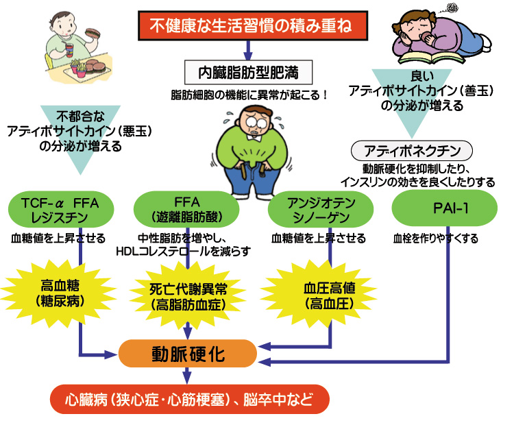 不健康な生活習慣を続けると”さゆりクリック:生活習慣病。