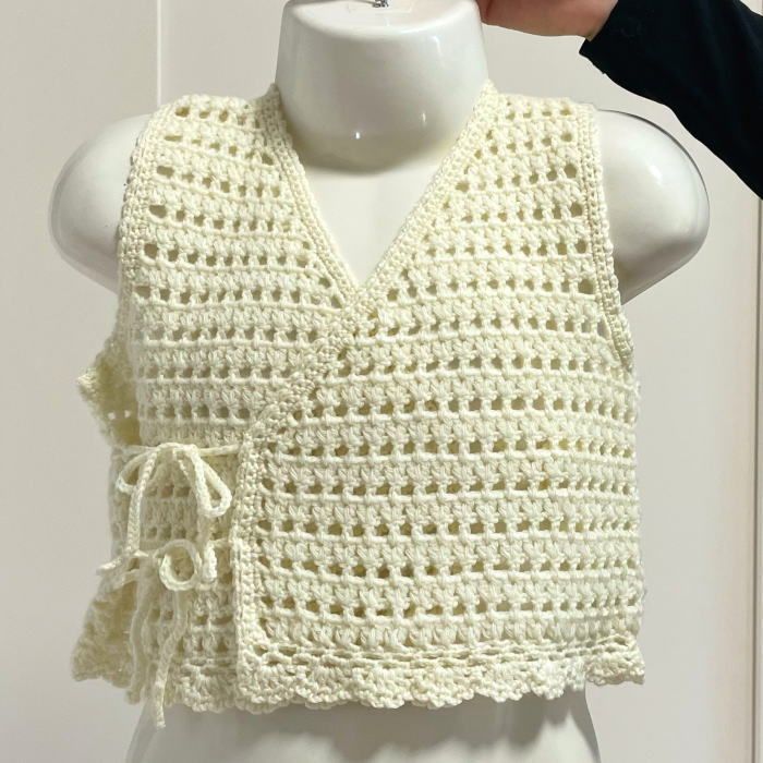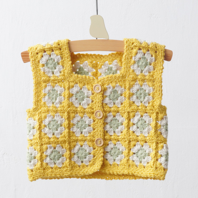 編み物キット4-6 モチーフつなぎのベビーベスト スクエアネック。