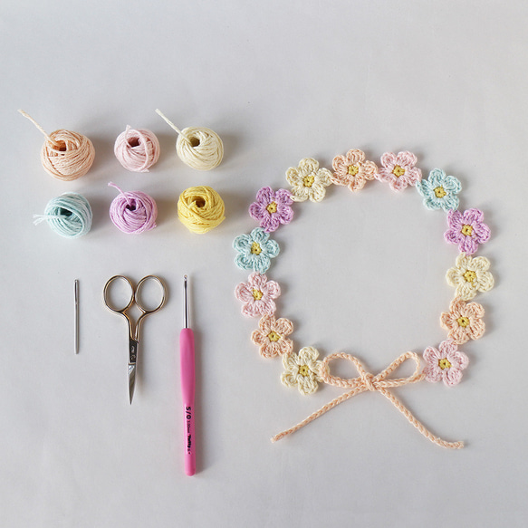 編み物手作りキット*花かんむりのヘアバンド*ベビー*キッズ*バースデーフォト*オーガニックコットン*かぎ針編みキット 雑貨・その他 むうむう 通販17740662Creema クリーマ。
