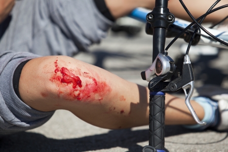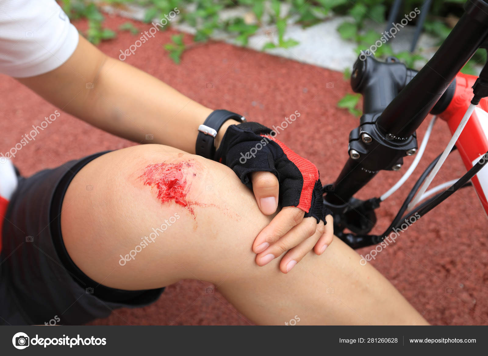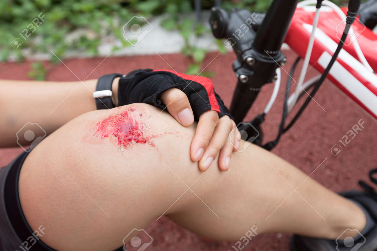 自転車の怪我、サイクリング中に転倒した女性サイクリストが両膝を負傷の写真素材・画像素材 Image 123810544。