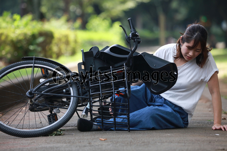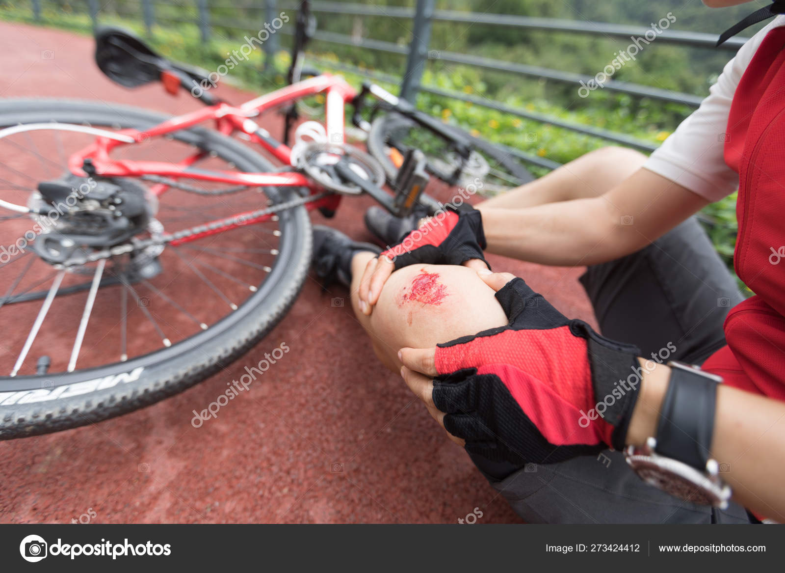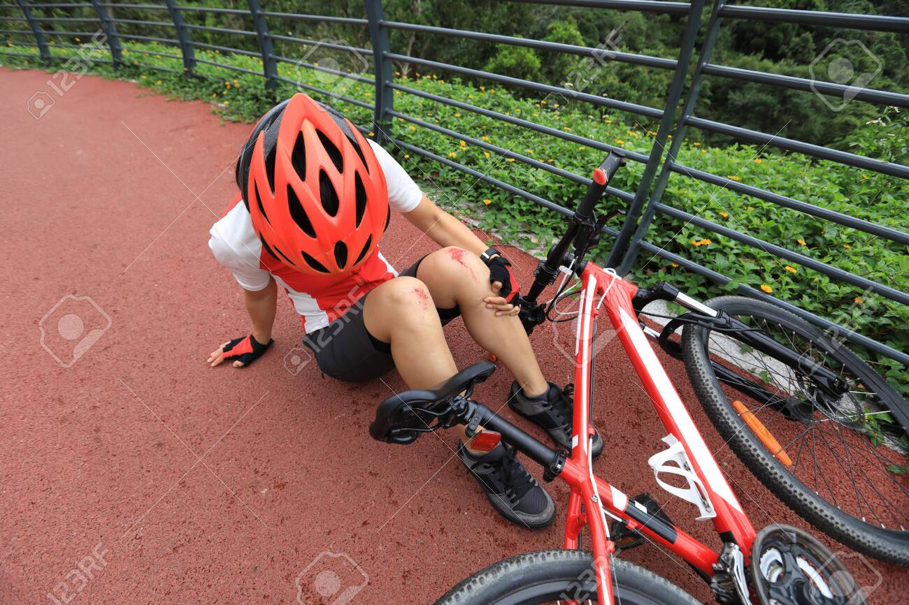 自転車の怪我、サイクリング中に女性サイクリストが転倒、両膝を負傷の写真素材・画像素材 Image 126490515。