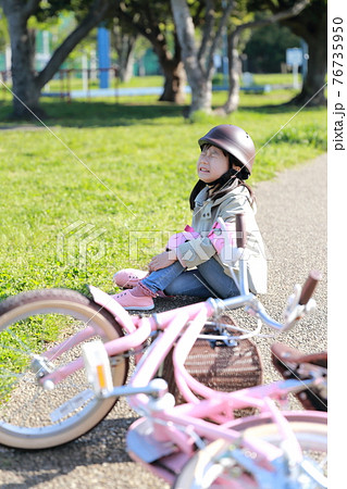 自転車の練習中に転んで怪我をする女の子の写真素材76935571- PIXTA。