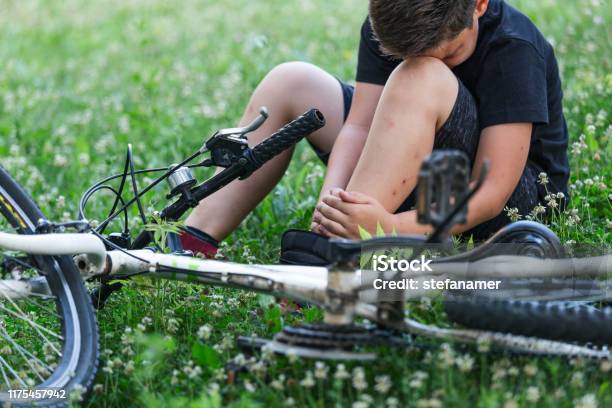 コンセプトバイク事故公園で自転車に乗った後膝関節に痛みを伴う少年自転車転倒後に足首が痛みます子供の怪我 - 1人のストックフォトや画像を多数ご用意 -iStock。