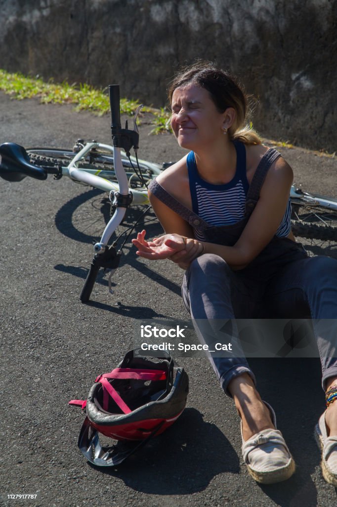 自転車から転倒傷害を持つ少女若い女性は自転車を落下から怪我 - サイクリングのストックフォトや画像を多数ご用意 - サイクリング, 自転車, 女性 -iStock。