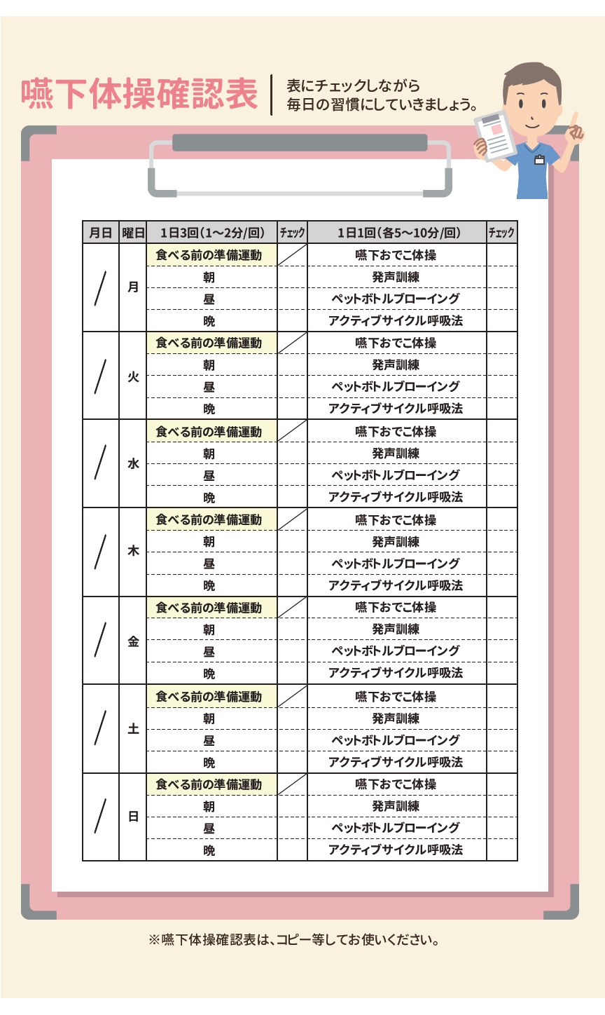 専門家が作成:嚥下おでこ体操のプリント・イラスト素材を無料ダウンロード。