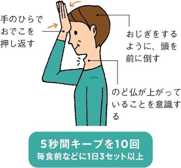 誤嚥防止に役立つ! 飲み込む力を鍛える「おでこ体操」「頭持ち上げ体操」 口と歯毎日が発見ネット。