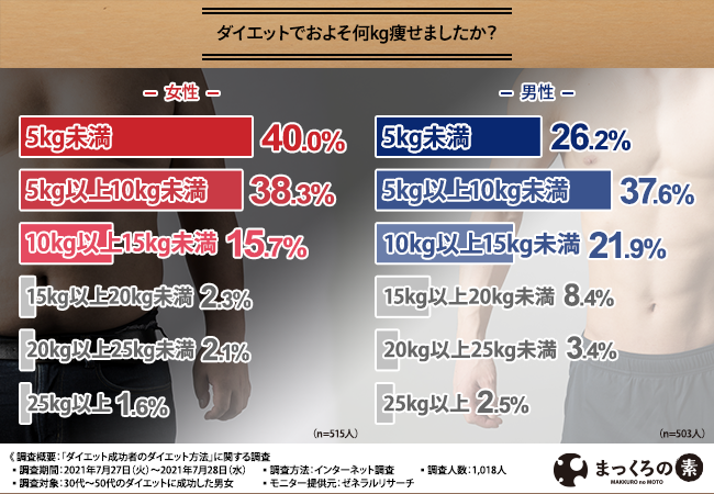 ダイエットの成功率に男女差は!? 男女のダイエット事情に関する調査「マイナビウーマン」。